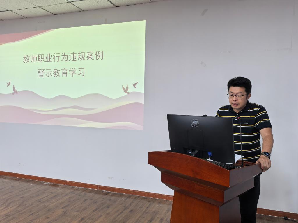 为进一步强化警示教育,筑牢教职工思想根基,王宁书记带领全院教职员工深入学习了中央八项规定精神及近期高校违规案例警示教育。他以真实案例为镜,引导教职工从中吸取教训,让每位教职工都能时刻保持警醒,坚守纪律底线,后续公司还将以党支部为单位,组织开展相关研讨活动,确保警示教育入脑入心。