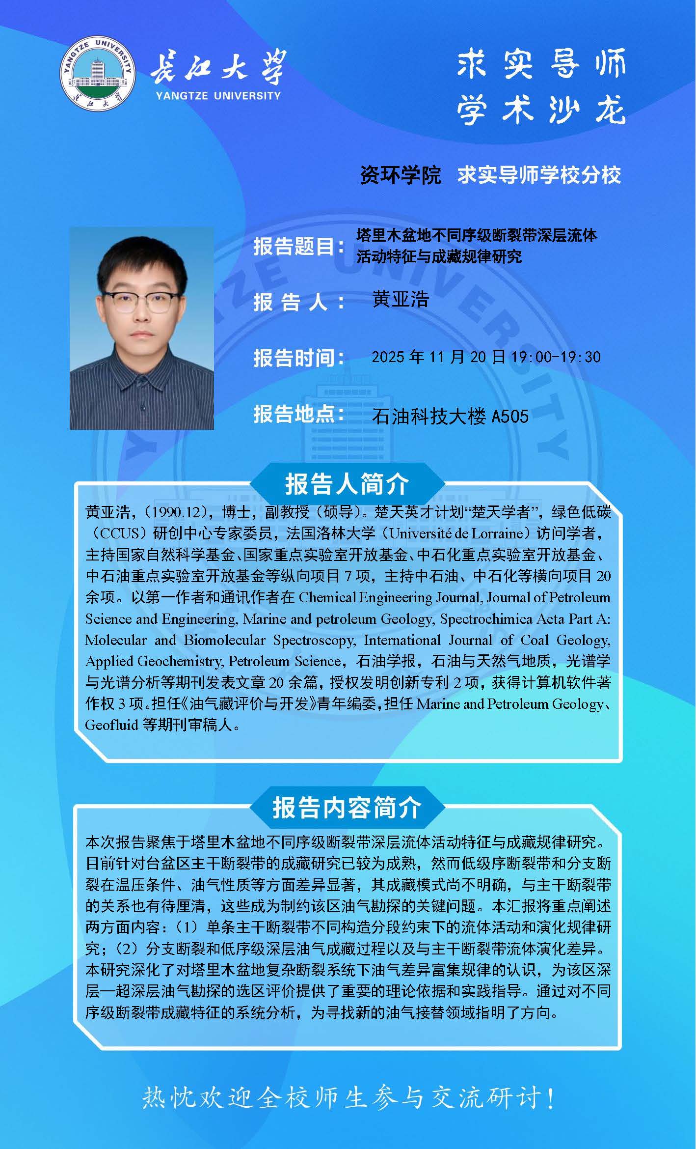 2025-2026学年“求实导师学术沙龙”讲座信息(黄亚浩)