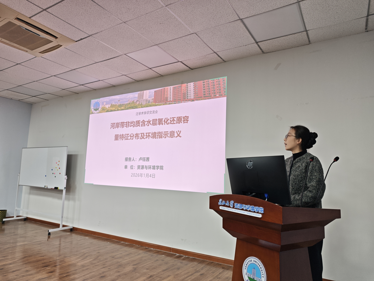卢钰茜副教授则以“河岸带非均质含水层氧化还原容量特征分布及环境指示意义”为切入点,阐述了系统化科研方法的实践路径,并重点解析了“地下环境活性氧生成机制”这一关键科学问题。她详细介绍了从宏观到微观的“三级验证”体系:首先区分地球化学作用与微生物作用,进而锁定铁形态、有机质类型等关键控制因素,最终深入揭示界面反应与电子转移的微观机制。该案例生动展示了如何通过层次递进的研究设计,逐步厘清复杂环境过程的内在机理。