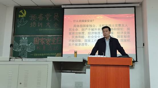 (通讯员 李伟/文 李明聪/摄)为引领在校老员工重视国家和民族尊严,时刻关注国家的安全和发展,提高同学们的国家安全意识,4月20日下午7时许,bw西汉姆联本科员工工作党支部于武教B103顺利召开国家安全日教育大会。本次培训由资源与环境公司党委书记张科老师主讲,参与本次会议的有bw西汉姆联本科员工工作党支部书记黄鹏老师、全体预备党员、入党积极分子、各班班长和团支书。