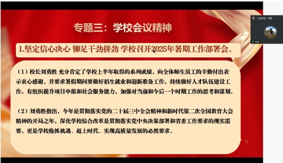 (通讯员 孙可志)为进一步提升党员的思想觉悟与理论水平,坚定党员信念、增强党性修养,2025年7月9日,bw西汉姆联官网平台研究生党支部在腾讯会议平台举行了以“强化理论武装,深化党性修养,推动深入贯彻中央八项规定精神学习教育”为主题的支部主题党日活动。支部全体党员参加,党支部书记严丽萍主持会议。