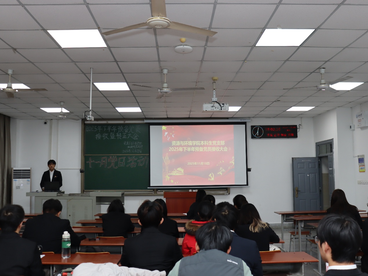 (通讯员孙文静) 2025年11月18日下午6点, 公司本科生党支部于武教A106举行2025年下半年预备党员接收暨转正大会,学工办主任李春花老师、员工党员、发展对象参会。 大会第一项,接收预备党员。3名发展对象依次上台向党组织汇报入党动机、成长收获、未来发展及需要向党组织说明的问题。发展对象入党介绍人对发展对象的情况加以说明,并对其能否入党表明意见。经支部讨论和无记名投票表决,同意接收李燕丽等3名发展对象为中共预备党员。 大会第二项,预备党员转正。申请转正的4位预备党员依次上台,向党组织汇报了预备考察期学习、工作、针对自身不足改进情况,深刻阐述了对党的认识、入党动机以及个人成长与进步。经支部大会讨论和无记名投票表决,同意答淑涵等4名同志按期转为中共正式党员。 此次支部大会的召开,为党组织注入了新鲜血液,壮大了党员队伍。李春花老师在总结讲话中强调,全体党员要时刻牢记入党初心与动机,将不足与批评化为动力,不断加强理论学习,在学习、工作和生活中发挥党员的先锋模范作用,为公司的发展和党的事业贡献自己的力量。 审核(李春花)