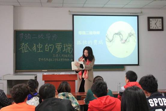 讲座伊始,刘娥老师浅谈了《朗读者》这一节目,意味深长的说:“比董卿容貌美的人很多,她之所以有那么大的魅力,是因为她内在散发出来的优雅与文学气质。”强调了用心阅读的重要性。老师拿着那本她已翻阅品味多遍的《红楼梦》开始今天的讲座----孤独的贾瑞。
