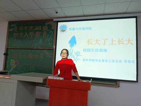 接着,她让大家详细讲解了有关综合测评、奖学金、医保及评优的相关规定。如:从医疗保险的类别到有效的流程再到理赔的材料乃至报案电话等等。在讲座的最后,李春花老师强调了班号的准确认识,公司事务与院办办公室的位置,还有心理健康中心蒲公英之家的具体位置与联系方式,她叮嘱新生们要保持积极向上的生活态度,不要有过于多的心理压力,有困难了可以找同学、班导、老师、蒲公英之家,并祝愿他们可以度过一个充实快乐的老员工活。