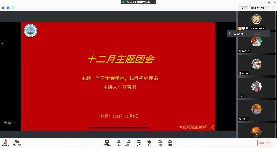 (通讯员 王瑞林 图/文) 2021年11月8日至11日,中国共产党第十九届中央委员会第六次全体会议胜利举行。全会听取和讨论了习近平总书记受中央政治局委托作的工作报告,充分肯定党的十九届五中全会以来中央政治局的工作,审议通过了《中共中央关于党的百年奋斗重大成就和历史经验的决议》,审议通过了《关于召开党的第二十次全国代表大会的决议》。2021年12月8日中午11时,公司指导督促研究生各班举办12月政治理论学习主题班会。
