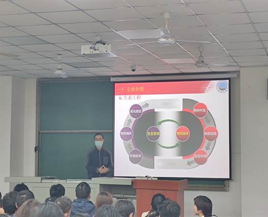 大会伊始,由各专业老师进行专业介绍。来自地球化学系谢小敏老师向各位同学讲述了自己与地球化学结缘的故事,并向大家传达了自己的心得体会:如果你没法选择你的热爱,就热爱你的选择。环境生态工程专业的罗杰老师在开始介绍前表示“我不是来打广告的,我希望大家能选择自己真正喜欢的专业。”接着用他风趣幽默的语言将专业名称拆分开,从“环境”“生态”“工程”“生态环境”“环境工程”“生态工程”“环境生态工程”这7个方面向大家详细解读了环境生态工程专业的研究意义。最后由潘红忠老师代表水文与水资源工程专业向大家展示了水文的魅力。从优秀员工到水文大事,从2005年荆州开办到2002年国家一流专业获批,bw西汉姆联官网平台在短短的17年内将水文与水资源工程打造成了“两好两高”(考研好,就业好;考研质量高,就业质量高)的优质专业。在三位老师全面精准的介绍下,同学们都对公司开办的专业有了更深的了解,心里也对自己的选择有了初步的想法。