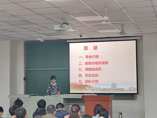 在大会第三项中,公司各研究团队的导师代表分别上台进行了导师介绍,地球化学系的吴越老师和陈果老师分别介绍了岩矿地球化学和有机地球化学的导师团队,优秀的团队力量和先进的实验设备都让大家叹为观止。而水环系的贺美老师,陈燕飞老师,陈彦美老师对于水环境,地表水以及地下水各方面的详细介绍,再次获得了现场的掌声雷动,尤其是陈燕飞老师慷慨激昂的一句“选择水文水资源专业就是选择美好的人生!”,更是引起了同学们的热烈反响。