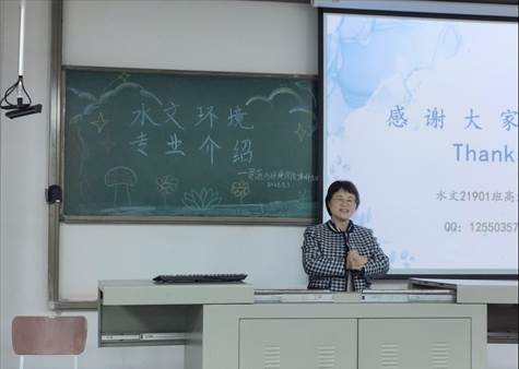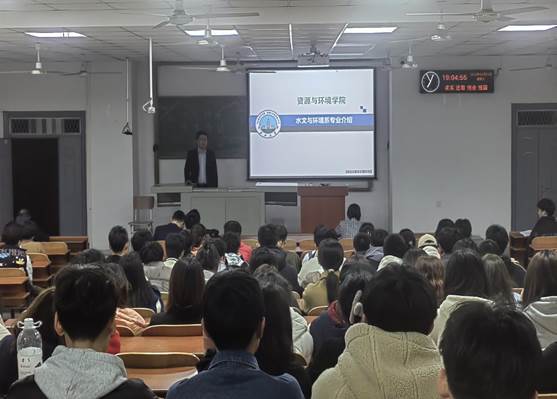 会议之初,王老师从专业设置,国家发展,团队力量等方面为同学们进行介绍水环系基本情况,让同学们对水环系的学习,发展,优势等有一个明确具体的认知。最后以“和谐师生,幸福资环”作结,衷心期盼欢迎同学们的到来。