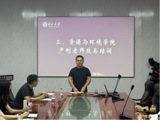 汇报结束后,严刚老师为六位主讲人颁发荣誉证书,并做总结发言。他高度肯定了沙龙在促进学科交叉、激发创新思维方面的作用,鼓励研究生们“以问题为导向,打破学科壁垒,在探索地球奥秘中实现突破”。活动最后,全体师生合影留念,为本次学术交流画上圆满句号。