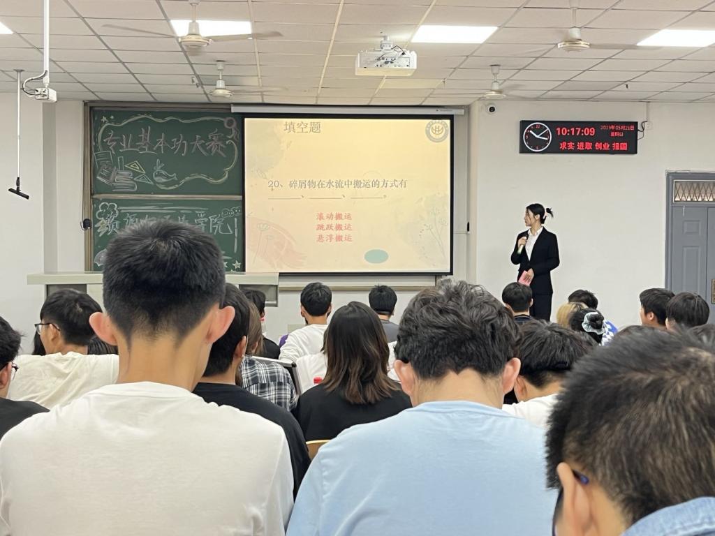 活动伊始,由主持人分别介绍今天到场的嘉宾以及参赛的六支队伍,并向参赛选手和观众简要介绍了初赛的五个环节:脚踏实地,绞尽脑汁,趣味问答,你追我赶,抽签自答。当比赛开始后,有的同学全神贯注、苦思冥想,有的同学奋笔疾书、镇定自若。每位选手拼尽全力,不放弃每一个得分的机会,为我们献上了一场精彩的知识竞赛。在中场环节,台下的观众们跃跃欲试,积极参与了趣味问答环节,每位回答了问题的观众或选手也得到了学习科创部准备的精美礼品。最后,第六组凭借稳扎稳打、团结合作的优良作风摘得了本届专业基本功大赛初赛的桂冠。