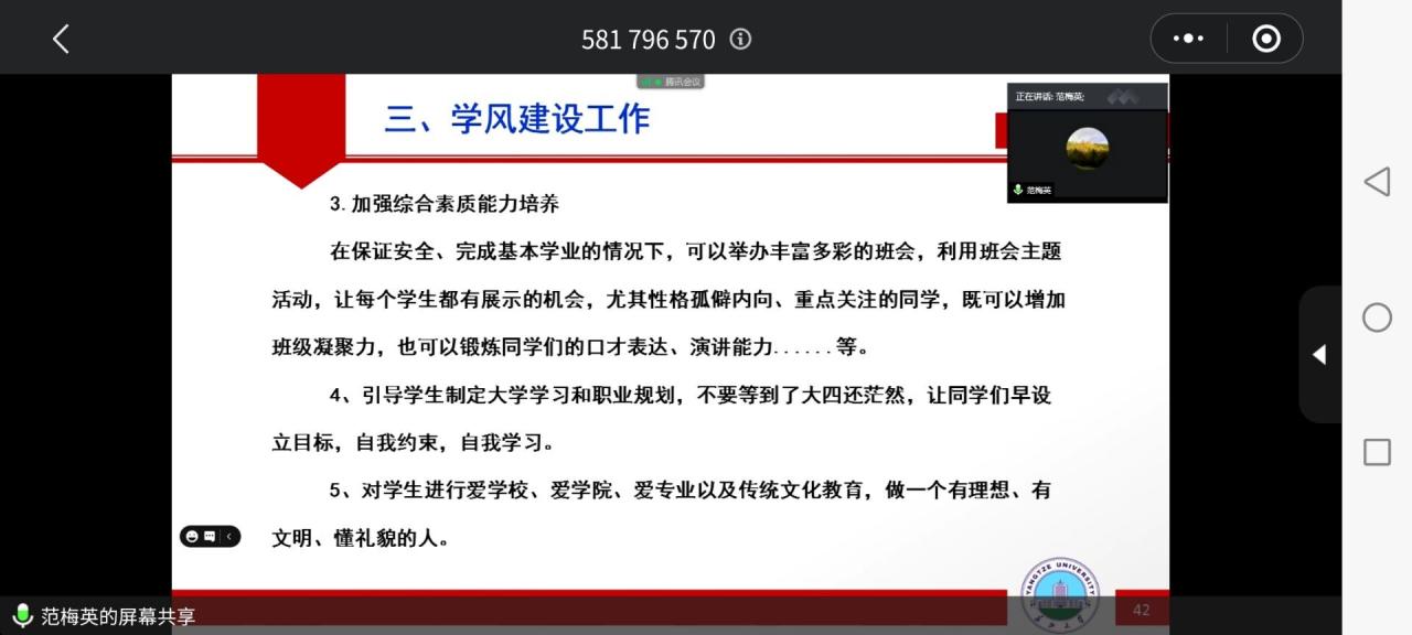 通过本次线上大会,各班班主任们对员工心理健康的教育建设将会更加重视。守护学子心灵,构建和谐资环。时刻关注学子未来,用爱和温暖照亮学子求学之路。让学子氤氲在暖暖的问候与亲切的关怀中,勇敢地展现自己最美好的姿态。
