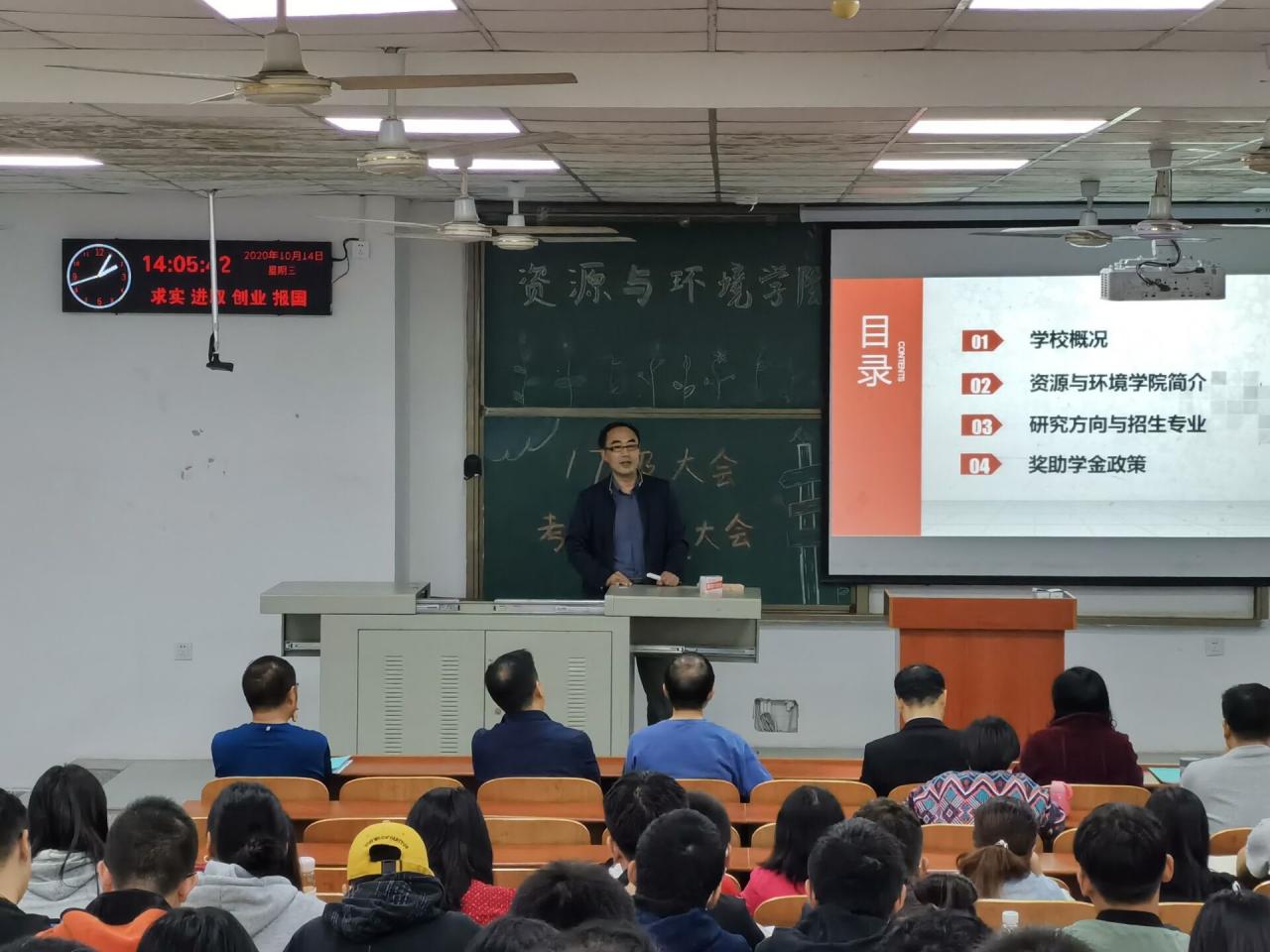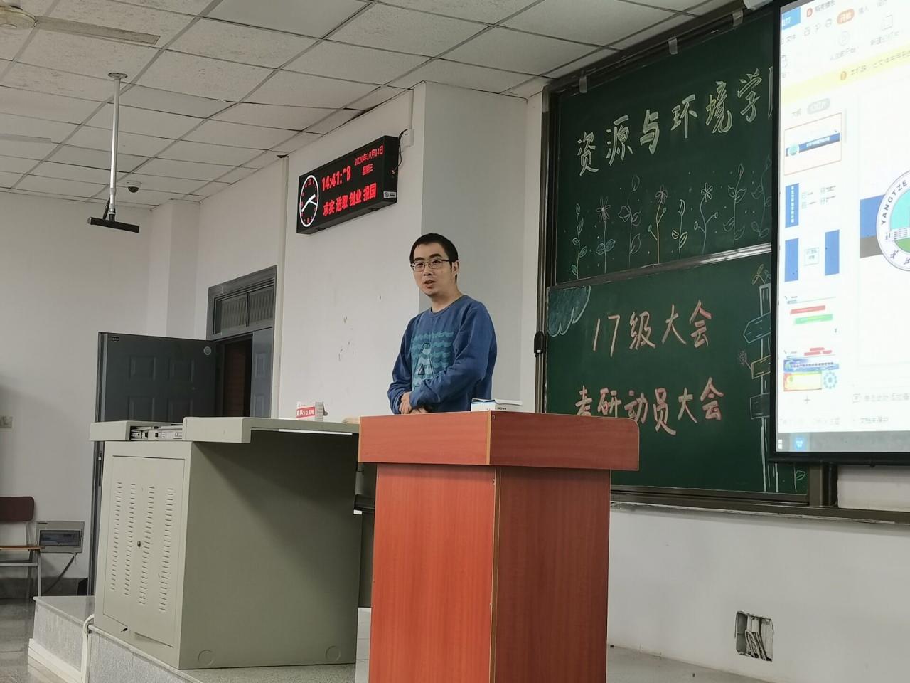 随后,地化系肖七林老师以及水文与环境系罗杰老师分别进行了宣传。他们就各自专业的学科背景、专业培养方向、导师队伍、人才培养条件以及就业及发展前景进行宣传。闻道有先后,术业有专攻。通过专业课老师的详细介绍,同学们更好地明白自己感兴趣的专业是什么,对自己将来考研后要学什么,怎么学,以及学成后能干什么也得到了更加细致地理解。