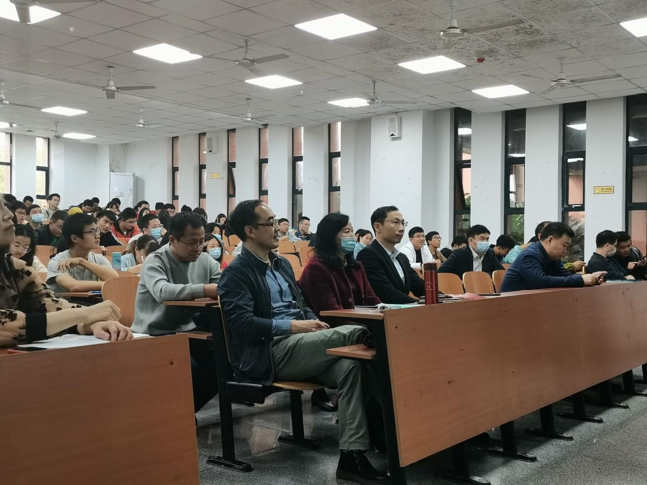 紧接着,研究生代表博士严刚、研三学长邵波进行了发言。他们分别就各自的读研经历与同学们进行了深切地交流。学长的亲身经历,对同学们来说无疑是最直白的了解方式。同学们就自身的疑惑,积极地向学长们进行提问。学长不仅在大会中将自己学习专业课的方式方法介绍给大家,同时也和同学们分享了自己在研究生时期发生的趣事。大家通过问答的方式,从学长那里了解到了除专业学习以外,其他与考研生活有关的故事。在其乐融融的氛围里,同学们对今后丰富多彩的考研生活有了进一步的憧憬。