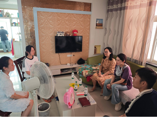 在小陈同学家中,帮扶小组带来了更为具体的解决方案。小陈同学性格内向,在多次面试中表现不佳,导致求职信心受挫。辅导员黄鹏、郭政针对这一情况,在她熟悉的家中环境里,为她进行了一场特殊的“一对一”模拟面试和心态疏导。