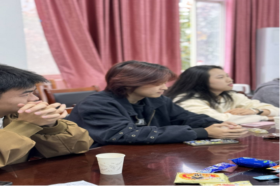 活动伊始,工作人员早已备好“情绪盲盒”签到墙及各类活动物资,还贴心准备了水果、小点心等茶歇。同学们有序签到,随机抽取写有情绪词汇的卡片贴于胸前作为“临时身份”,自由选取座位落座,在轻松氛围中静待活动开启。随后的“情绪蹲蹲乐”破冰游戏点燃全场氛围,大家以情绪卡片为身份互动应答,出错小组用表情或动作诠释对应情绪,快速拉近彼此距离。