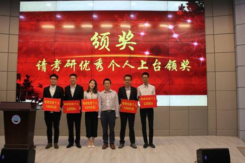 副经理赵红静宣读了表彰文件,表彰授予梁文燕等54人为考研优胜个人、地化1301班等4个班为优胜班级,并给予一定的物质奖励。