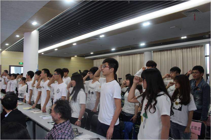 副董事长郭海敏致辞,对国家环境保护部生态司处长、中法武汉生态示范城管委会副主任王捷的光临表示欢迎。紧接着,bw西汉姆联官网平台常青生态志愿者协会举行了简单的启动仪式。蔡甸区湖泊管理办公室喻志勇主任对蔡甸区湖泊整体规划做了简单陈述,倡议师生们利用媒介宣传“水环境保护”,加入志愿队伍,促进开展针对“水污染”的调查、治理与研究活动。常青生态志愿者代表梁宇涵上台表达了自己对环境保护的决心与信念。王捷处长为常青志愿者代表授旗。协会全体志愿者进行了宣誓。