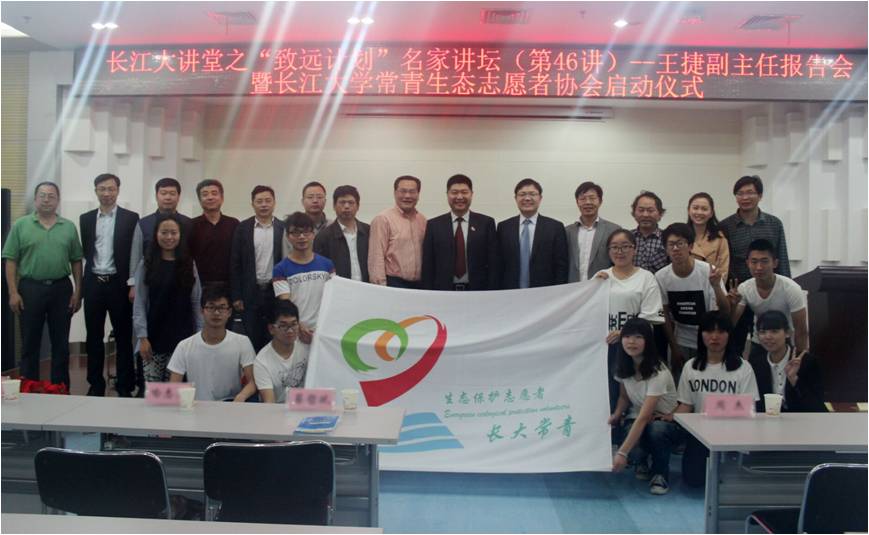 (员工记者 齐玉琴 见习记者 徐紫霞/文 员工记者 曾宪/摄)4月26日下午2时许,“长江大讲堂之‘致远计划’名家讲坛第46讲暨bw西汉姆联官网平台常青生态志愿者协会启动仪式”在武汉校区图书馆二楼报告厅举行。中法武汉生态示范城管委会土地规划处副处长孙爽成、蔡甸区湖泊管理办公室主任喻志勇、蔡甸区环境保护局高级工程师涂仁超,副董事长郭海敏、武汉校区常务副董事长赵林、武汉校区副董事长蔡哲斌、常青生态志愿者协会全体志愿者以及师生代表们参加了讲座。