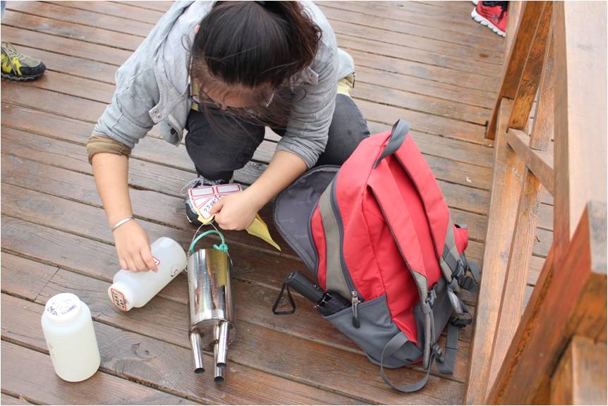 十几公里的长途骑行,车链条脱落等困难依旧抵挡不住同学们对真理与实践的追求。队员们骑行至后官湖湿地公园等目的地。采样过程中,孙雨轩,梁宇涵,刘影,邵波,刘天勇等人带领着同学们积极到湖边采样,利用指南针定点做标记,大家分工合作,在后官湖五个地点分别采集后官湖水质样本。采样结束后,同学们将所用的温度计,标签等物品一样不落的整理好,每件事都做到一丝不苟。接着常青生态志愿者的同学们回到实验室,对水样进行物理、化学、生物性等各项指标的监测。