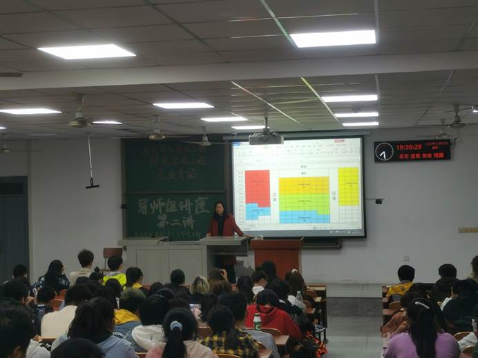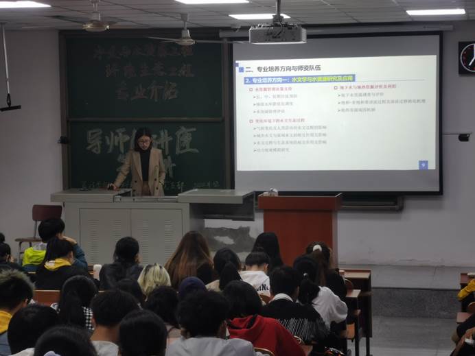 接着,贺老师讲到了本校在人才培养方面所能提供的条件。首先,在人才培养条件上,公司将为员工提供实践基地、校级科研平台和省部级科研平台,来保障员工的科研实践条件和实践能力的培养。其次,公司也有很多强有力的老师可以为员工们提供知识、科研等方面的辅导。在最后贺老师提到,学历决定起点,在未来的就业方向上,有行政事业单位、水利电力设计院、地矿部门、勘察施工单位和环评公司等,只有不断提高自身的学历,才能拥有足够的能力,成为进入这些公司的“敲门砖”。她希望同学们能对两个专业有更好的了解,从而选择到自身真正感兴趣的行业,从而为自己未来的发展打下一个坚实的基础。