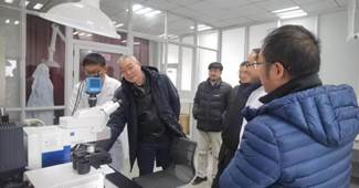 冯董事长在油气包裹体实验室、Ro镜检实验室分别和预约做实验的老师进行交流,详细询问了预约的流程、做实验的相关记录等方面的情况。