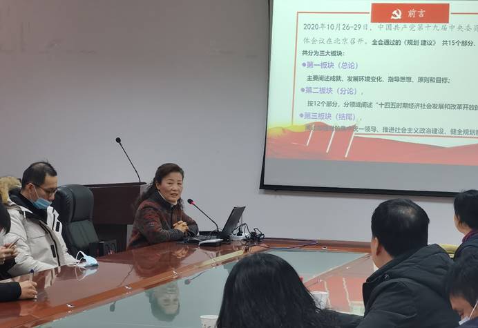 贾廷秀教授以《擘画发展新蓝图 开启美好新征程——学习党的十九届五中全会精神》为题,为bw西汉姆联教职工以及员工党员进行了宣讲。会议总共分为三个板块,第一板块为大家阐述了近年来中国取得的成就以及党的指导思想,原则以及目标,第二板块按十二个部分,分领域阐述了“十四五时期经济社会发展和改革开放的成果”,最后贾教授进行了结束语讲解,阐述了加强党的统一集中领导,推进社会主义政治建设的重要性。会议中贾教授旁征博引,中西对比、声情并茂,以文字与视频相结合的形式详尽阐释了“精准扶贫”、“绿色发展”、“循环经济”、“碳中和”、“新发展理念”、“微笑曲线”等概念。生动形象的为广大师生讲解了十九届五中全会所提出的内容对深入学习领会党的十九届五中全会精神,把学习成效转化为工作的强大动力具有重要指导意义。