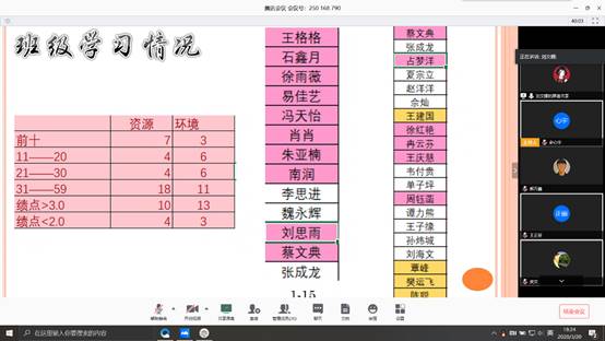 支部书记李春花鼓励大家以积极的态度开展线上工作,认真落实好各项工作。党委副书记范梅英,对支部同学们的工作给予了充分的肯定,鼓励同学们要充分发挥党员先锋模范作用,在工作的同时要加强自身学业学习和品德修养,在公司营造良好的学习氛围,目前重点要抓好线上学业预警帮扶工作,对于一年级19级同学,争取开学后有补考的同学一次性全部通过补考,从19级同学开始不出现学业预警。