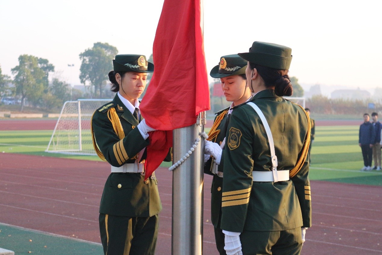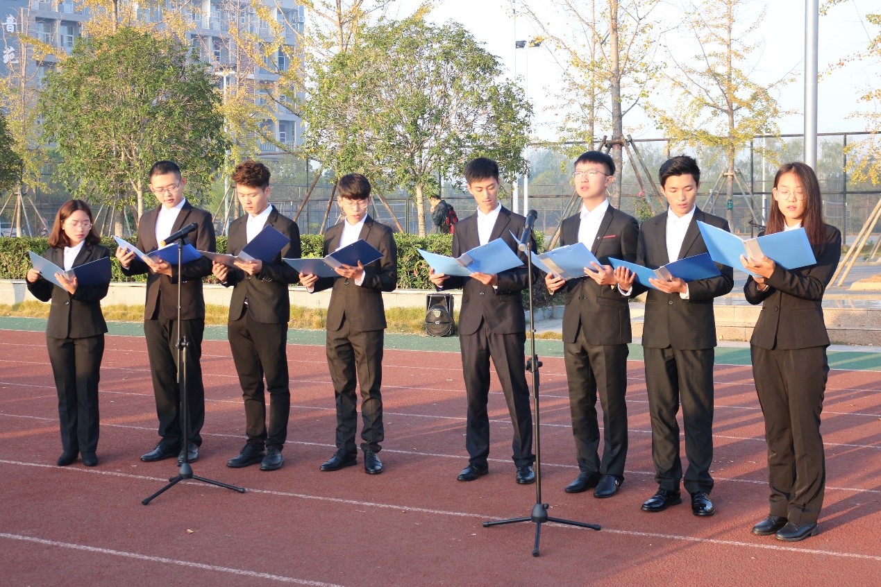 大会分为三个阶段。第一阶段升旗仪式,由bw西汉姆联官网平台国旗护卫队的队员护卫国旗,英姿飒爽,昂首挺胸地将国旗护送至升旗台。伴随激昂的《义勇军进行曲》,同学们将目光聚集在鲜艳的五星红旗,冉冉升起的红旗代表了祖国大地和资环学员从晨雾中破晓而出、朝气蓬勃的模样。