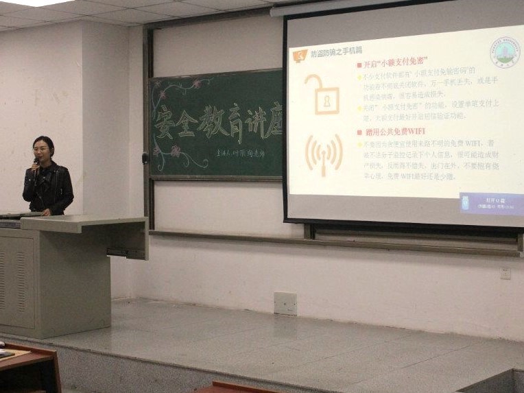 讲座的开展是为了创建平安校园,维护老员工人身、财产安全,提高老员工的安全防范意识与自我保护能力。叶老师围绕“四防”展开讲解,即强调老员工应注意防盗、防骗、防火及防溺水。随后,她指出在学习生活中,应时刻注意宿舍食堂等易发生安全隐患的地方。最后,叶老师用生活中几个实例给我们生活加以提醒和建议。为时半小时的讲座,同学们听得饶有兴趣。