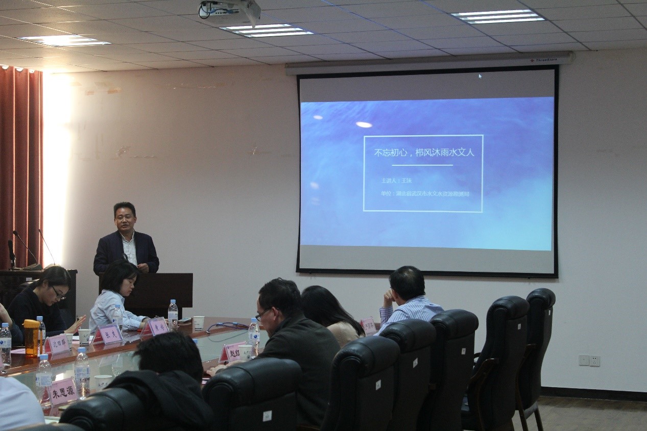 交流会由赵红静副经理主持,首先朱书记对bw西汉姆联官网平台概况进行简要描述,提出设备资源共享,人才共同培养,人才深造,实习及毕业设计等合作意向和合作方式,其次由经理助理蔡立梅老师对bw西汉姆联的现有科研项目,主要研究方向、科研强项简要介绍。由姚华明教授对水文水资源工程专业硕士点,学科重点研究发展四个方向做出解释,并展示bw西汉姆联官网平台国际水生态研究院研究项目bw西汉姆联官网平台水生态修复集成技术及应用。之后,霍思远老师与罗杰老师分别对水文与水资源工程,环境生态工程两专业的发展现状简要概括,最后,王沫局长做“不忘初心——栉风沐雨水文人”的分享,向大家展示武汉市水文局风貌,同时也分享自己身为水文人多年不忘初心的亲身经历和切身感受。