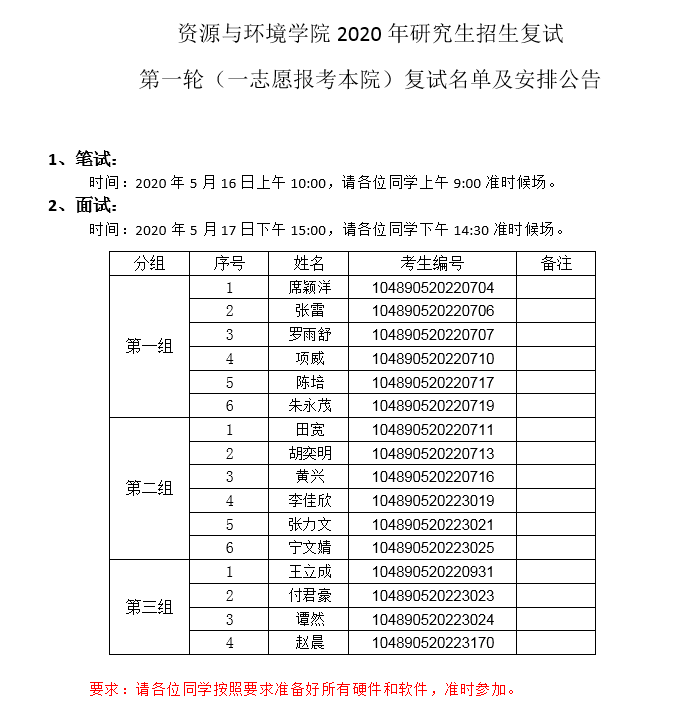 2020年研究生招生复试第一轮(一志愿报考本院)复试名单及安排公告
